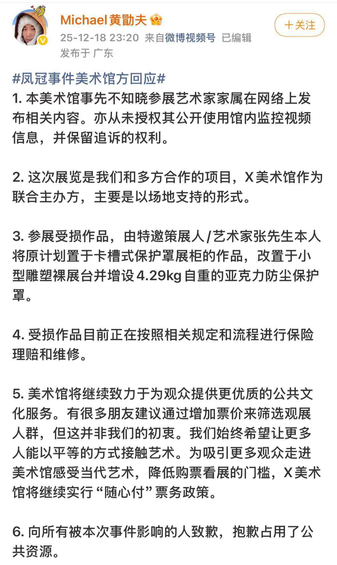 X美术馆创始人发文回应